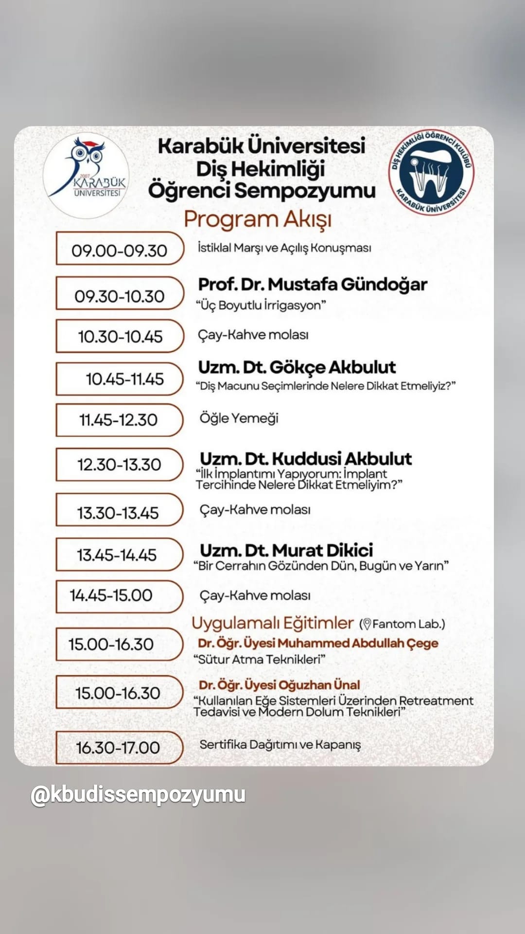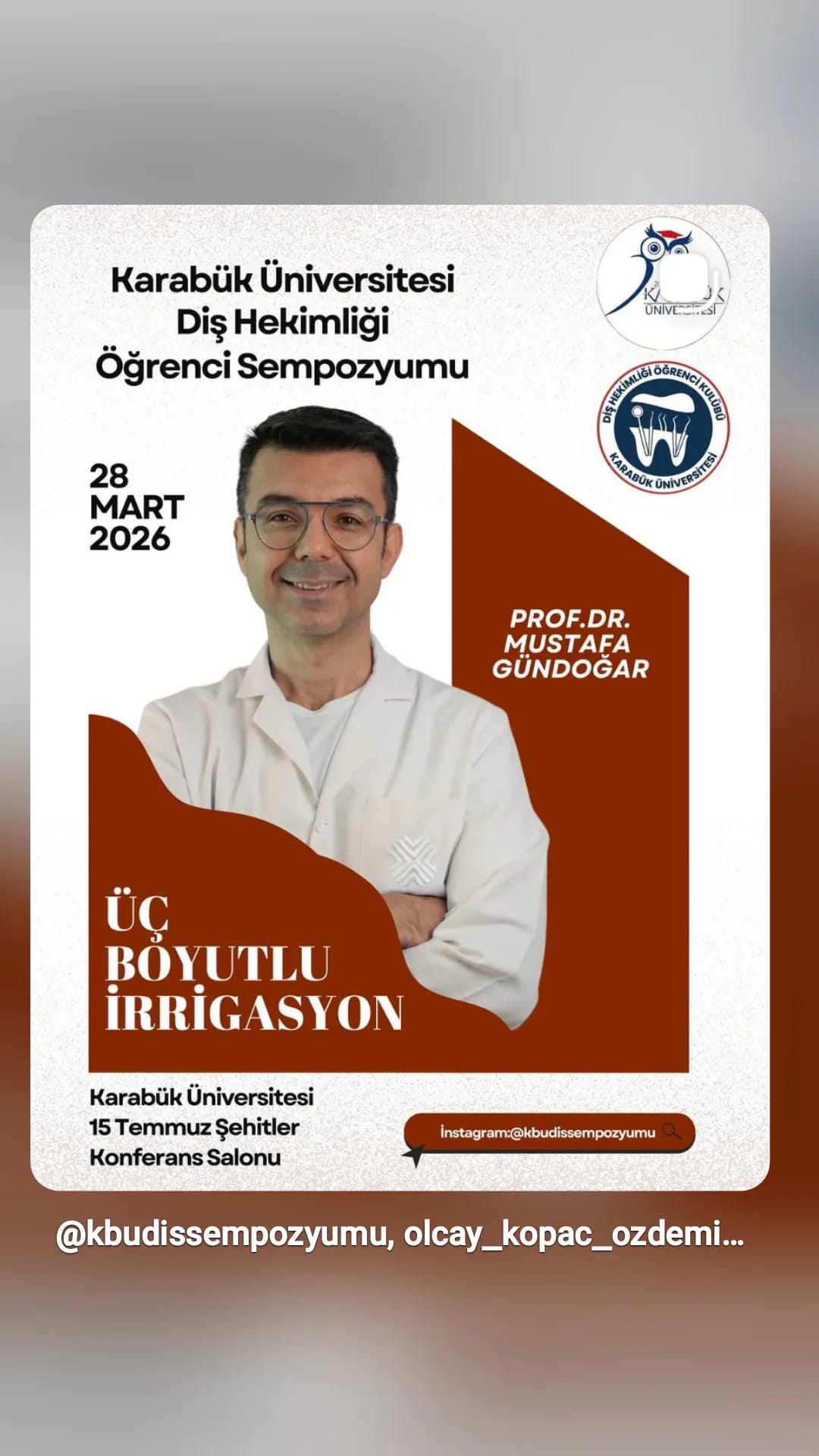 28 Mart 2026 tarihinde değerli hocalarımızın katılımıyla gerçekleşecektir. Alanında uzman konuşmacıların yer alacağı programda; üç boyutlu irrigasyon, implant seçim kriterleri, cerrahi perspektifler ve uygulamalı eğitimler gibi birçok konu ele alınacaktır.