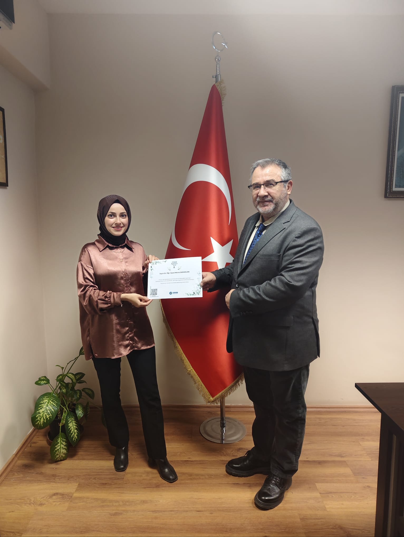 Fakültemiz Pedodonti Anabilim Dalı kadrosunda olup, İş Birliği Protokolü kapsamında T.C. Sağlık Bakanlığı Karabük Ağız ve Diş Sağlığı Eğitim ve Araştırma Hastanesi emrine görevlendirilen Dr. Öğretim Üyesi Merve SARIASLAN 29/09/2025 tarihinde Hastanedeki görevine başlamıştır. Fakültemiz Dekanı Prof.Dr. Tahir KAHRAMAN Öğretim Üyesi Merve SARIASLAN'ı makamında kabul ederek adına dikilmiş olan, fidan sertifikası takdiminde bulunurak kendisine başarılar diledi.