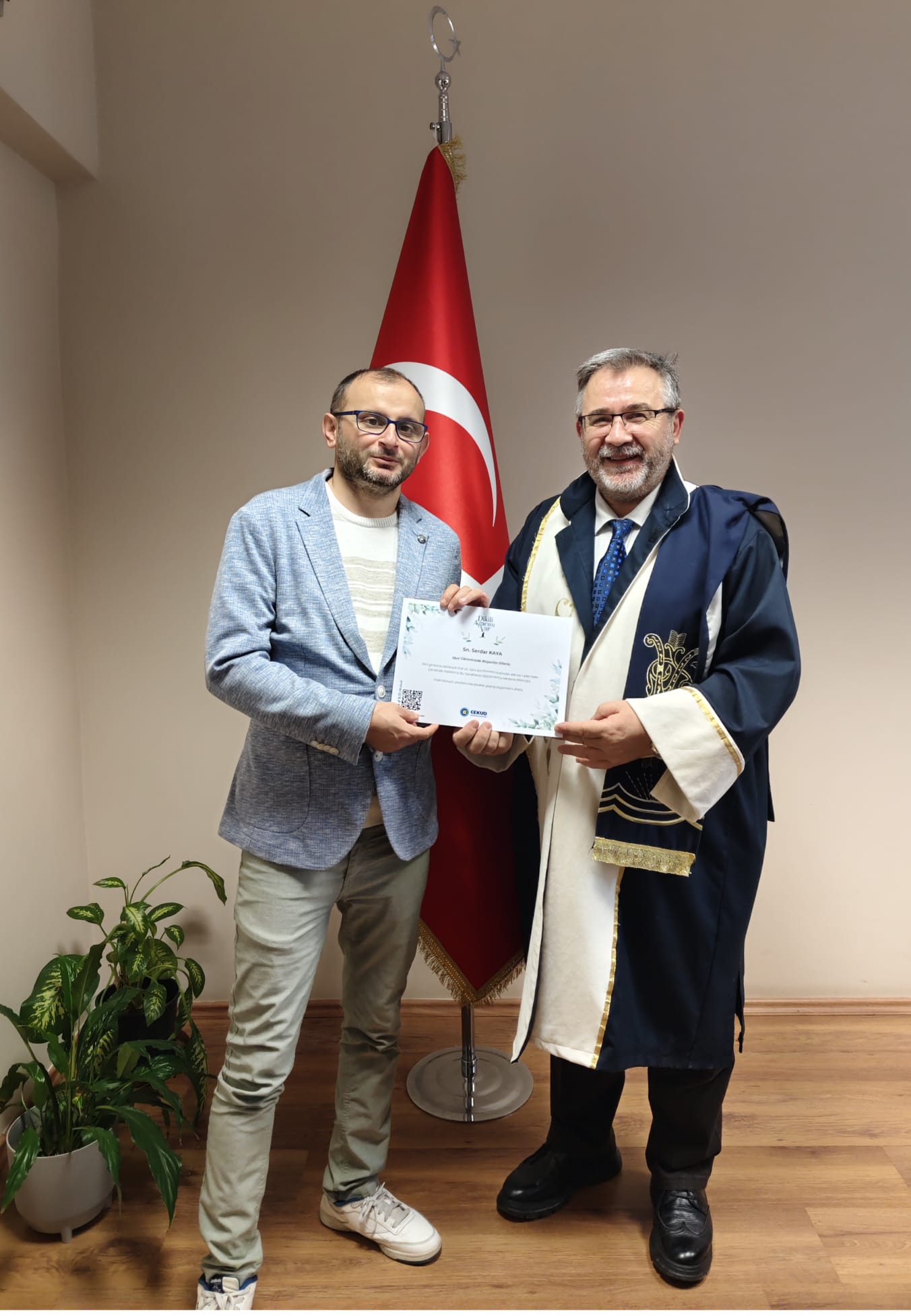 Fakültemiz bünyesinde idari personel olarak göreve başlayan Serdar KAYA'ya Dekanımız Prof.Dr. Tahir KAHRAMAN tarafından çevre duyarlılığını simgeleyen fidan sertifikası takdim ederek, yeni görevinde başarı dileklerini iletti.