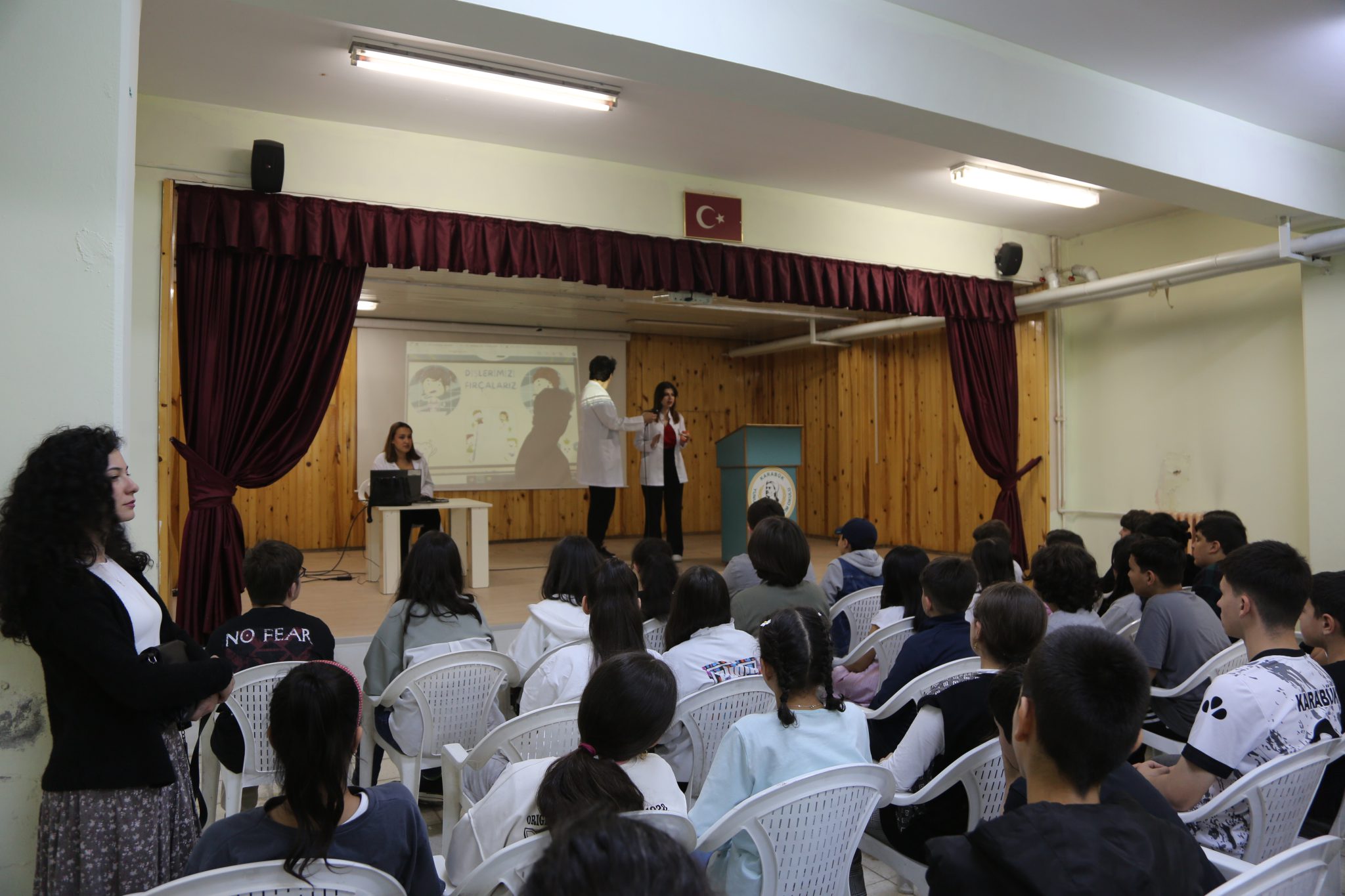 Gençlik ve Spor Bakanlığının desteğiyle gerçekleştirilen etkinlikte, öğrencilere ağız ve diş sağlığı, kişisel hijyen, sağlıklı beslenme alışkanlıkları konularında bilgi verildi.